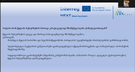 During the session, LAP members presented thematic reports and analyses on a wide range of issues: the level of environmental awareness within the community, the state of Kobuleti’s water resources, waste management practices, geology and hydrology, tourism and the challenges posed by climate change, ecotourism development, as well as the negative impact of climate change on natural and cultural heritage. These presentations highlighted the urgent need to develop comprehensive adaptation measures tailored to the municipality’s specific vulnerabilities.